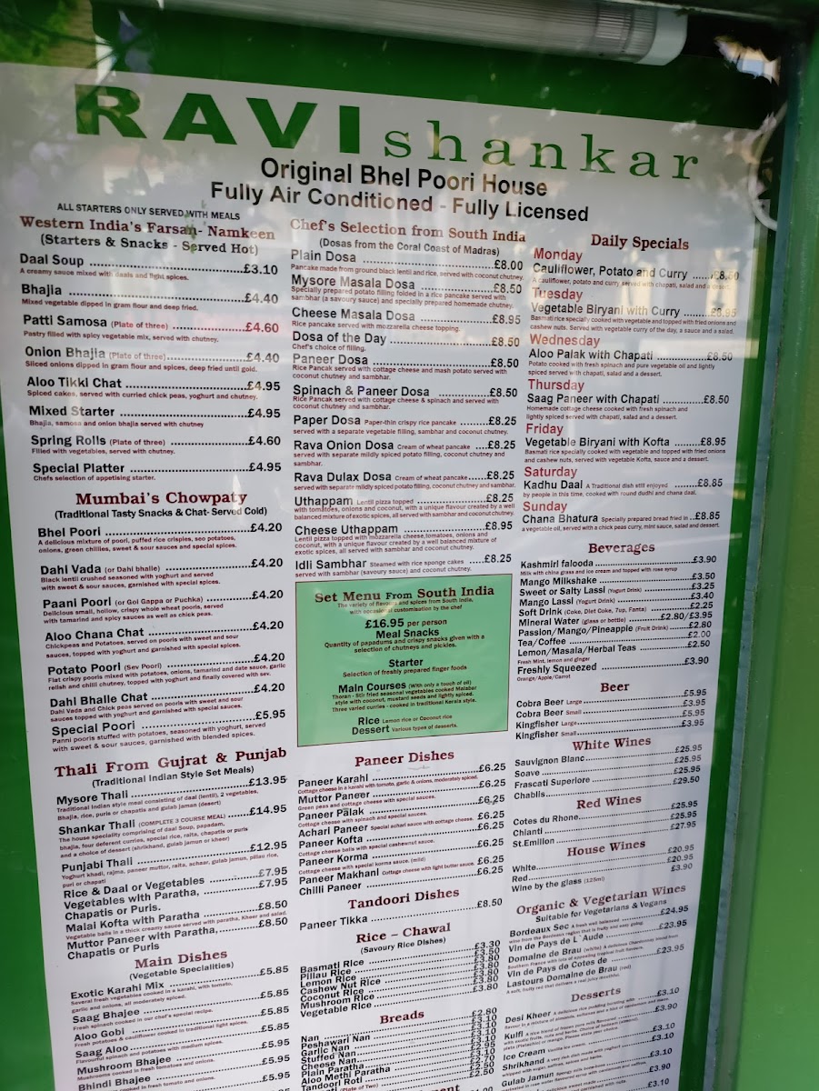 Welcome to Ravi Shankar Bhelpoori House, a delightful gem nestled in the heart of London, where exquisite Indian cuisine comes alive. Your culinary journey begins with the tantalizing Pani Puri and a vibrant Thali, offering a medley of traditional flavors. The menu boasts an array of vegetarian delights, including Paneer Dosa, Aloo Tikki Chat, and a hearty Muttor Paneer served with warm breads. For those seeking a true taste of India, their Special Platter provides a savory introduction to diverse dishes.